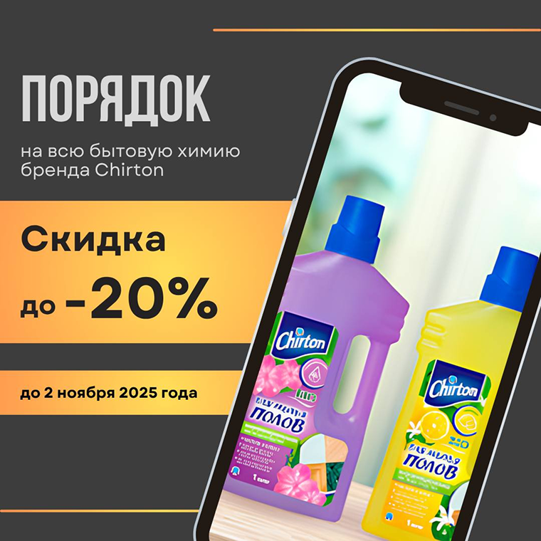 Мы дарим скидку до -20% на всю бытовую химию бренда Chirton. Мощные средства для безупречной чистоты и свежести в вашем доме по приятной цене!