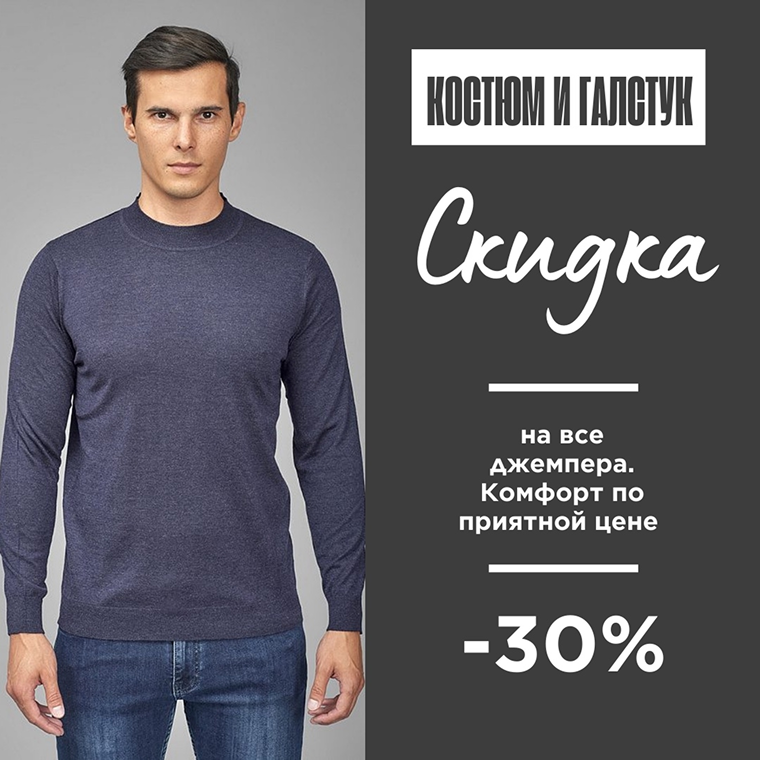 Для настоящих мужчин — комфорт по приятной цене. Все джемпера со скидками -30%. Согревайтесь с умом!