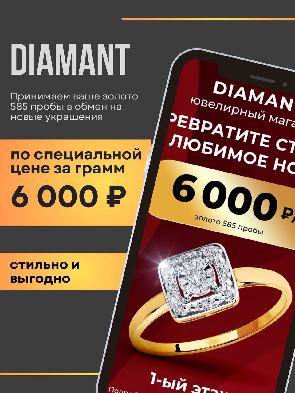 Обновите коллекцию с DIAMANT! Принимаем ваше золото 585 пробы в обмен на новые украшения по специальной цене – 6 000 ₽ за грамм.