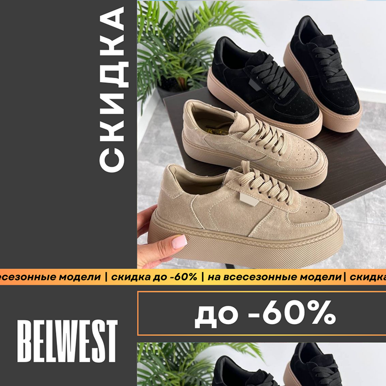 Ноги просят комфорта и красоты? Специально для вас скидки до 60% на женскую и мужскую обувь. В ассортименте — всесезонные модели на любой вкус. Акция действует до 31 марта 2026 года