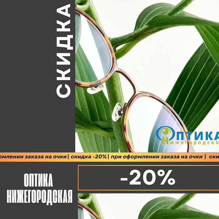Скидка -20% на весь заказ при оформлении заказа на очки. Скидка действует на все очковые линзы, кроме Perifoca, не действует на изготовление очков. Акция действует до 31 октября 2025 года