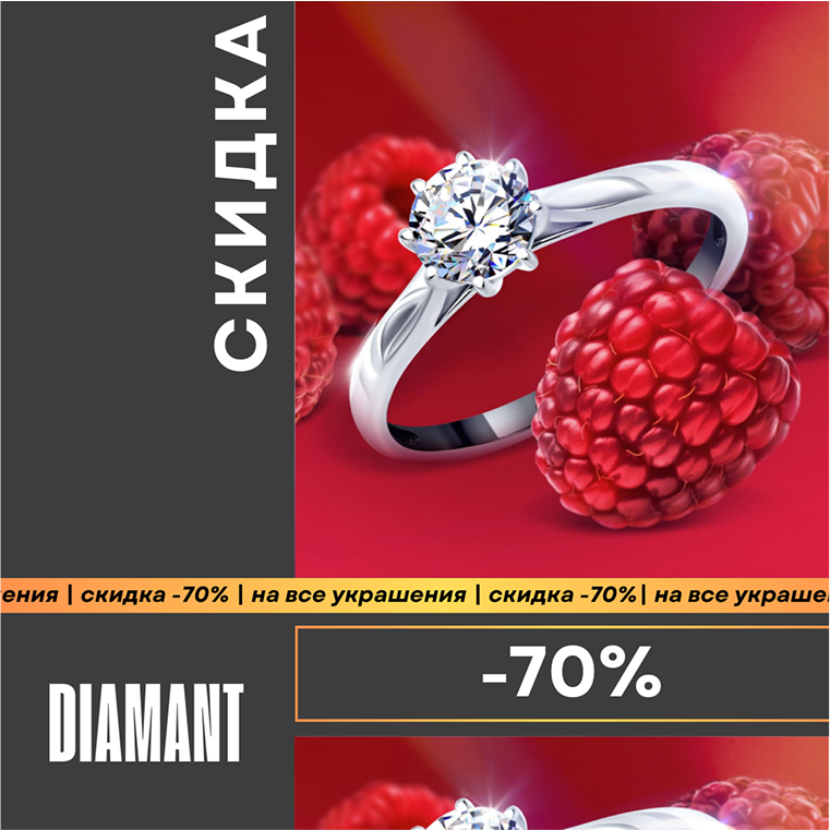 Жаркий сезон в DIAMANT: до −70% на все украшения! Выбирайте самые желанные модели, суммируйте предложения и создавайте освежающе стильные образы! Акция действует до 9 октября 2025 года