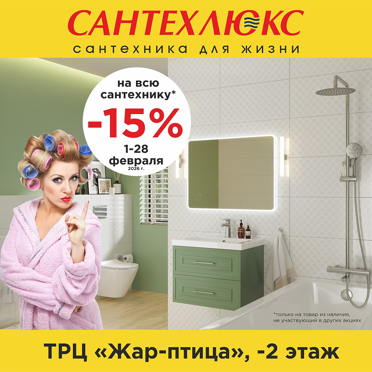 Если задумались о покупке сантехники - приходите в Сантехлюкс! Только в феврале дарим скидку 15% всем покупателям! Акция действует на товар из наличия.