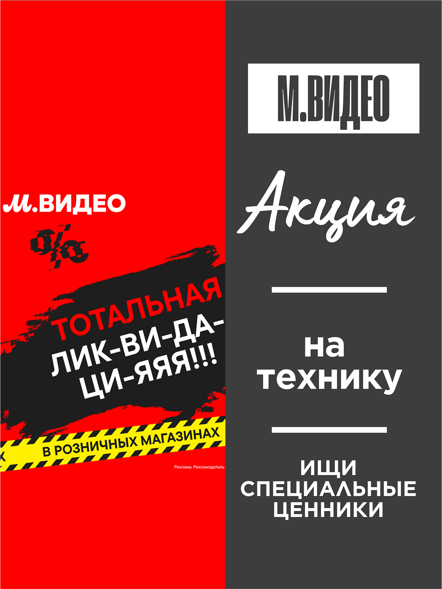 «Тотальная ликвидация! техники по классным ценам. Специальные секретные ценники только в торговых залах наших магазинов. Акция действует до 2 июня 2025 г.