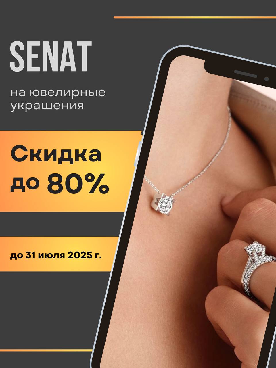 Скидки до 80% на ювелирные украшения! Скидка 55% предоставляется на основной ассортимент, скидка 70% на категорию товаров Аутлет. Акция действует до 31 июля 2025 года