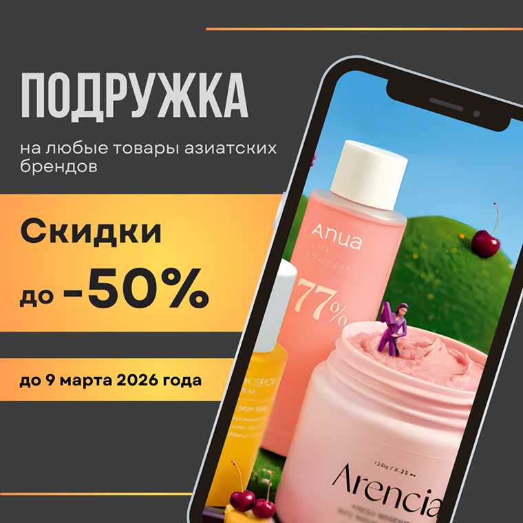 До -50% на Азию! Выберите любые товары азиатских брендов, участвующие в акции, и получите скидку до 50%. Акция действует до 9 марта 2026 года