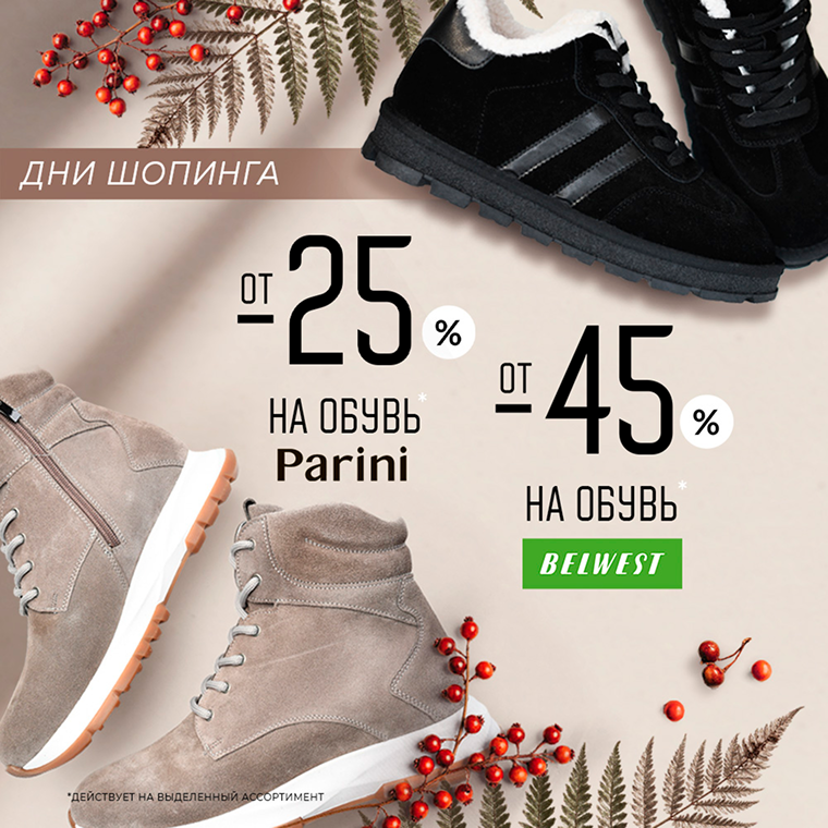 Скидки на ВСЁ! -45% на обувь на зиму и осень! Акция действует до 12 ноября 2025 года
