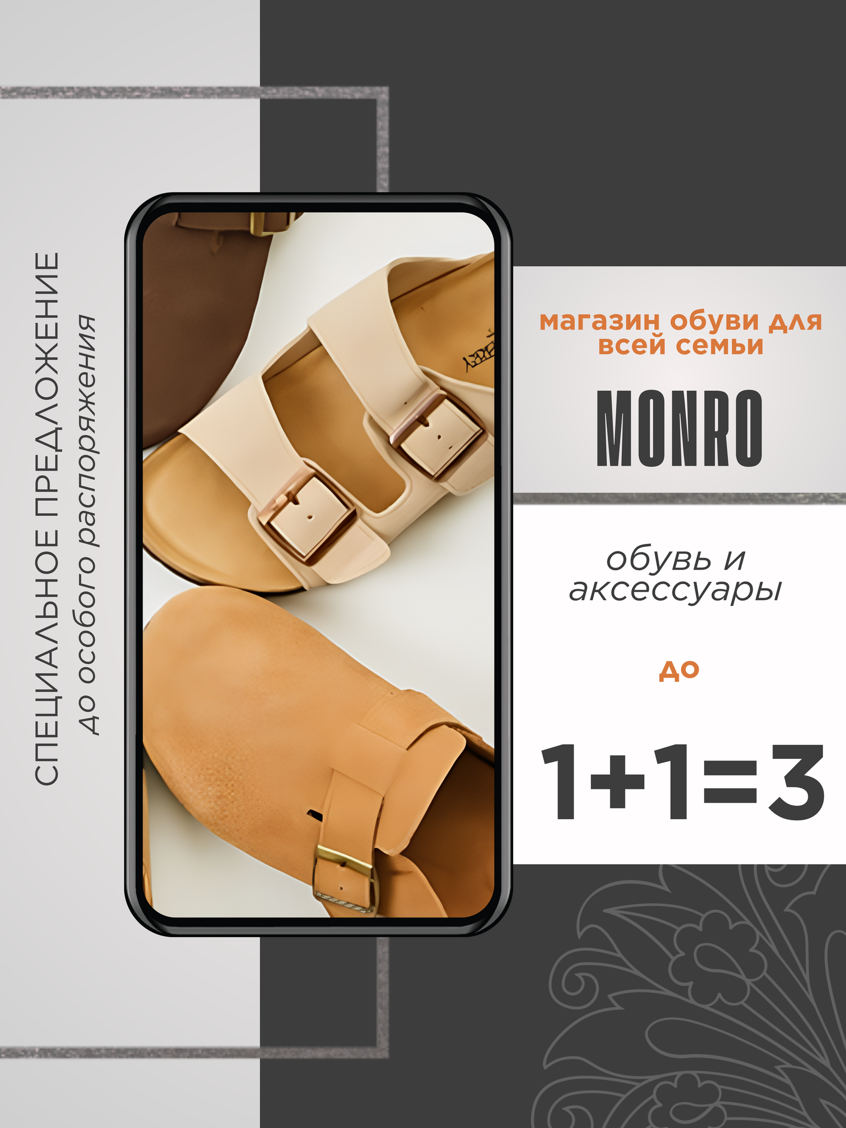 Вместе с летом в Monro возвращается ваша любимая акция "1+1=3". Теперь третий товар из классной новой коллекции обуви и аксессуаров можно получить бесплатно - со скидкой 100%.