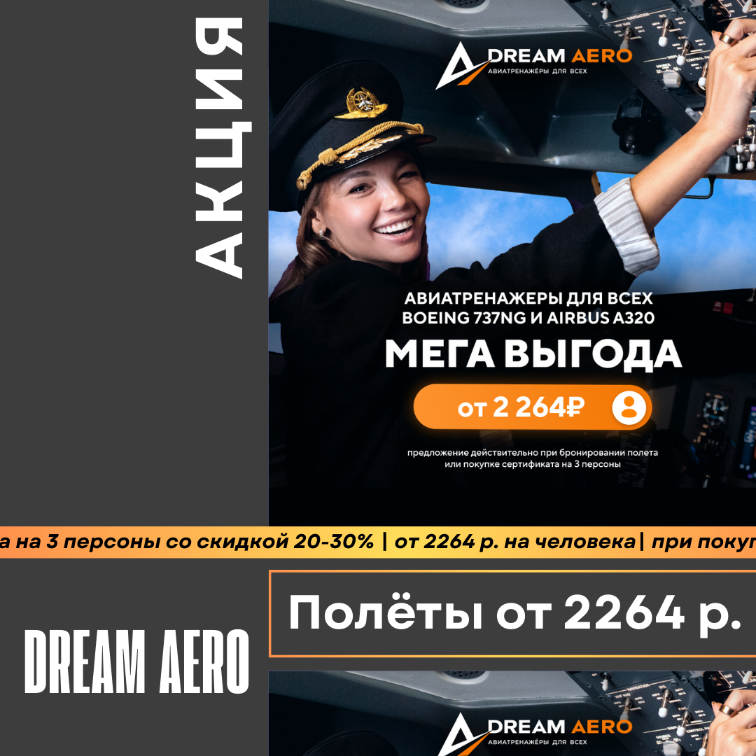 Полёты от 2264 рублей за человека! Один сертификат - эмоции на троих! Предложение действует при покупке тарифа на 3 персоны со скидкой 20-30%.